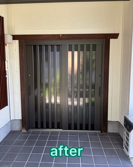 - 以前、木製建具・雨戸から 金属製サッシ・雨戸の取替を させていただいたお客様より 玄関のお取替えのご依頼をいただきました!