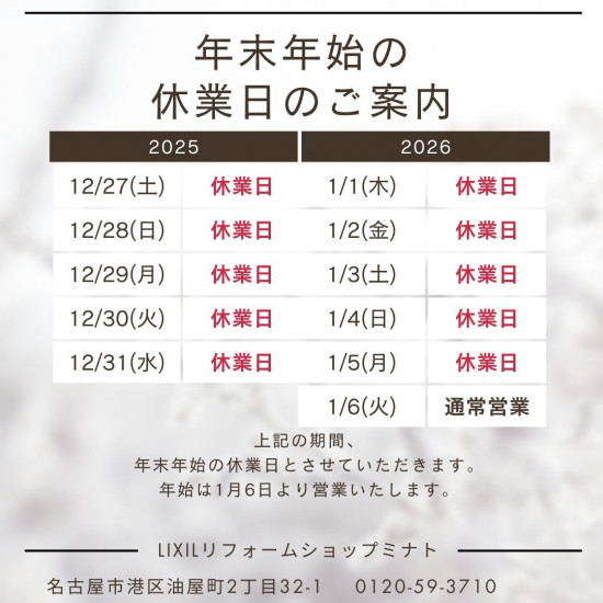 - 2025~2026年の年末年始のお知らせ