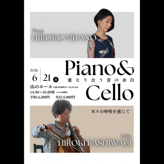 - 【宮野寛子・柏木広樹】Piano&Cello 日進市山のホールで行うデュオライブ♬