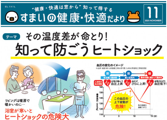 - 年間約19,000人が亡くなるとされるヒートショック。窓の断熱性を高めることで寒さの侵入を防ぎ、脱衣室や浴室の温度差を抑えて、危険を大幅に軽減できます。