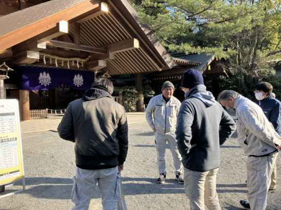 - 毎年恒例行事として、1月の第三土曜日は社員みんなで熱田神宮へ。 今年も一年、安全に仕事ができるように、安全祈願を行いました。