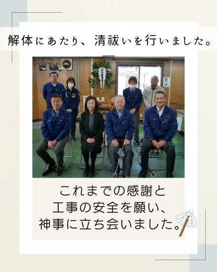 - 長年お世話になった事務所に感謝を込め、 改装工事に先立って清祓いを行いました。