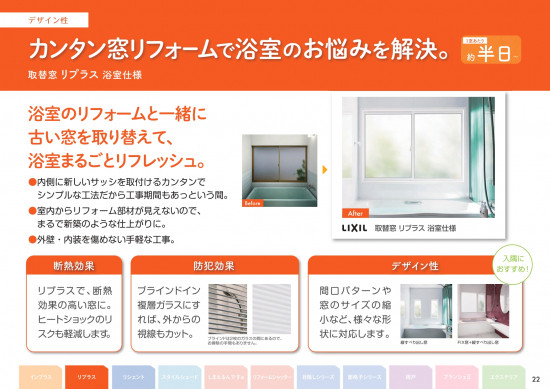 - お風呂の窓の寒さや結露、プライバシーのお悩み、まるごと解決しませんか?👀 LIXILの取替窓「リプラス 浴室仕様」なら、壁を壊さず、約半日で 高断熱の窓にリフォーム可能です !