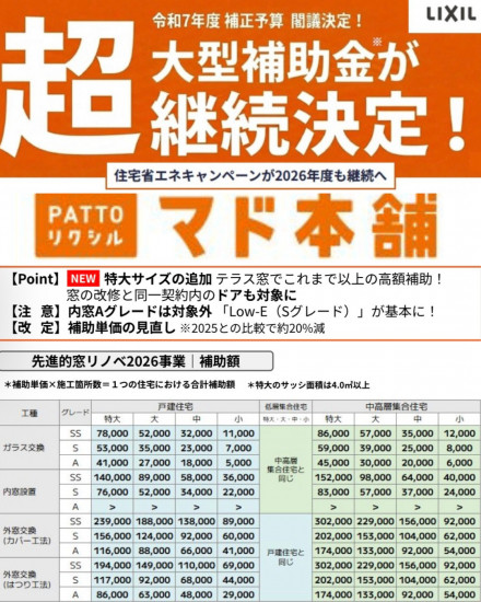 - 速報!超必見!あの大型補助金が2026年度も継続決定!💰 窓リフォームの大チャンス到来!
