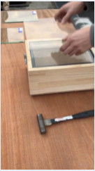 - 一般的なガラスをハンマーでたたきます