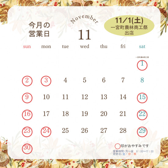 - 2025年11月営業カレンダーです♪