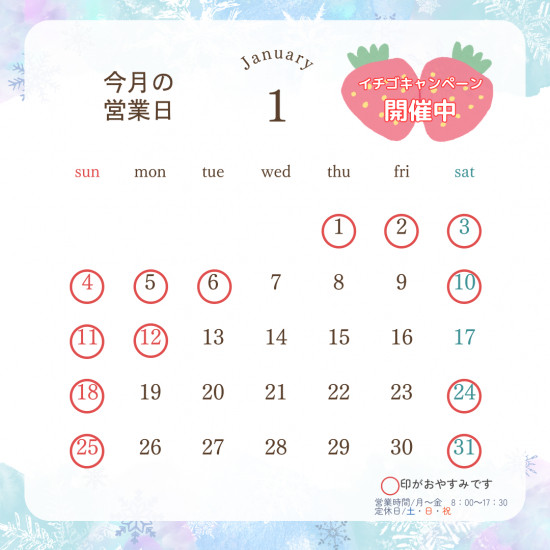 - 2026年1月営業カレンダーです♪