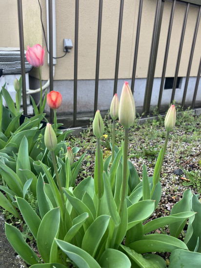 - 現場で見つけた桜とチューリップのつぼみ。これから咲こうとする姿に、春の訪れと未来への可能性を感じました。