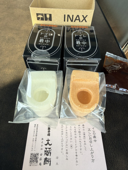 - トイレの形のモナカいただきましたー