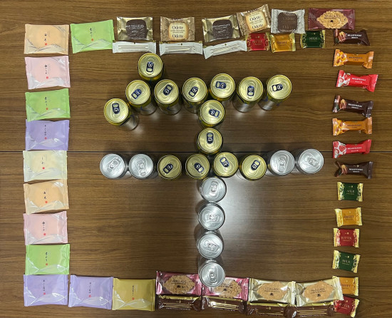 - 毎年恒例、御中元で頂いたビールやジュースで描く今年の文字作り。