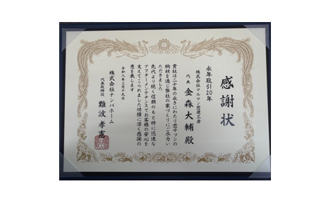 - 取引先様より永年取引20年の感謝状を頂きました😊