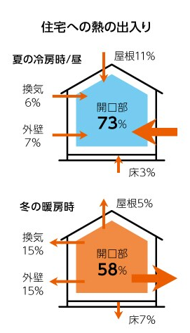 なぜなら、窓は熱が最も出入りしやすい部分であるためです。窓の断熱対策は、床や壁などの対策をするよりコスパがよいです。