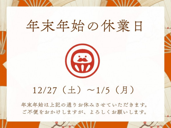 - 年末年始休業日のお知らせ