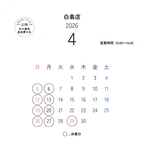 - 🌸4月の営業日をお知らせします🌱