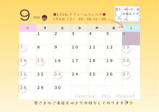 - 9月営業日のお知らせ