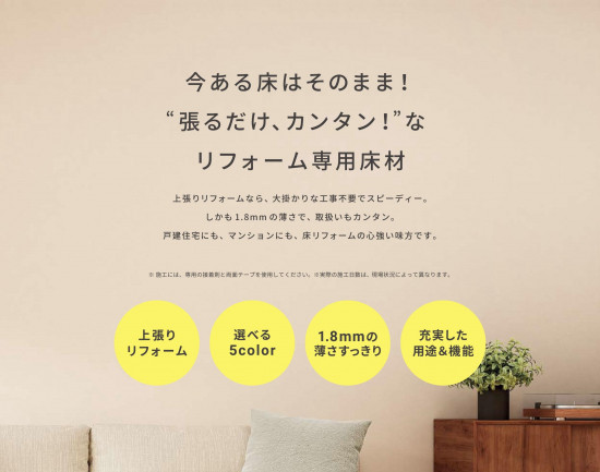 - 張り替え不要!重ねるだけの簡単リフォーム「リノバうわばdeフロア」