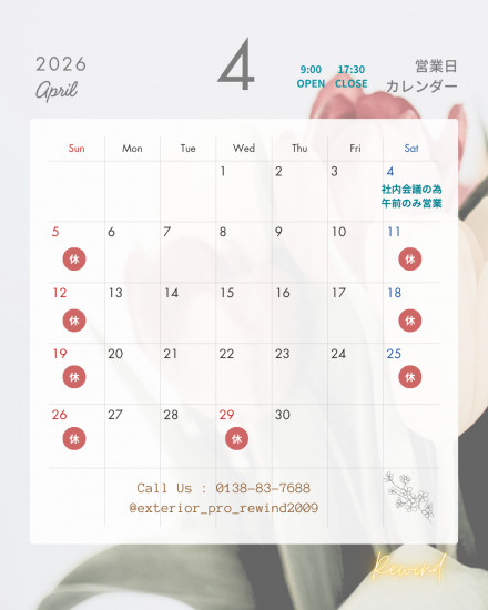 日曜 祝日 GW お盆 年末年始(土曜不定、お問い合わせください)