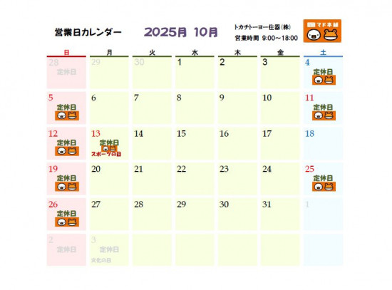 - 1月~3月は営業時間が9:00~17:30となっております。