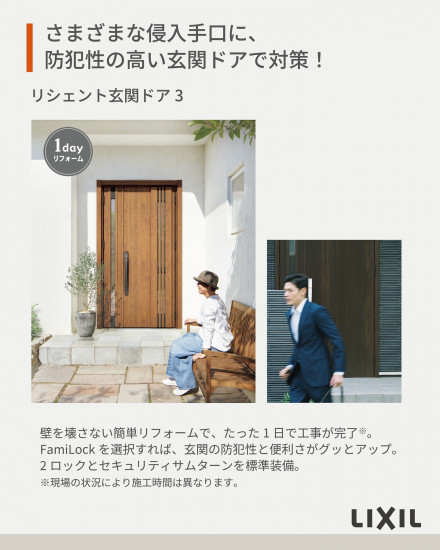- 空き巣対策は玄関から!1日で防犯性が上がるリシェント玄関ドア3とは