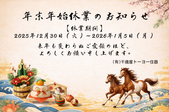 - 年末年始休業のお知らせ