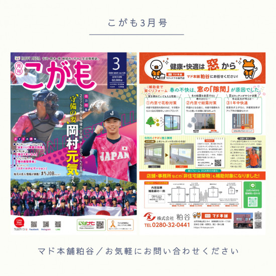 - こがも10月号掲載!補助金締切迫る!内窓設置で快適なくらしへ|古河市・野木町・境町の皆さまへ