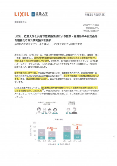 - 窓の断熱リフォームで、光熱費と医療費が年間最大約4.5万円も節約に!LIXILと近畿大学の研究で、特に60代世帯での高い健康・経済効果が証明されました。「窓」から家族の健康と家計を守りませんか?
