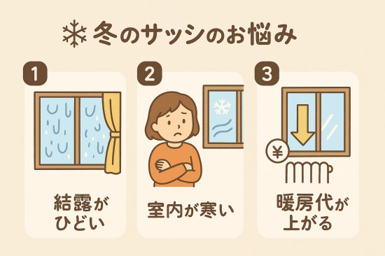 - ❄️ 冬に多いサッシ(窓)のお悩みベスト3