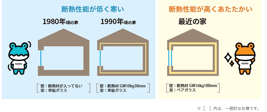最近の新築は断熱性能が高くなければ家が建てられなかったり、リフォームでも性能が高い商品が増えてきました。昔の家は断熱性能基準が低く、断熱材なし・単板ガラスの家がたくさんあります。