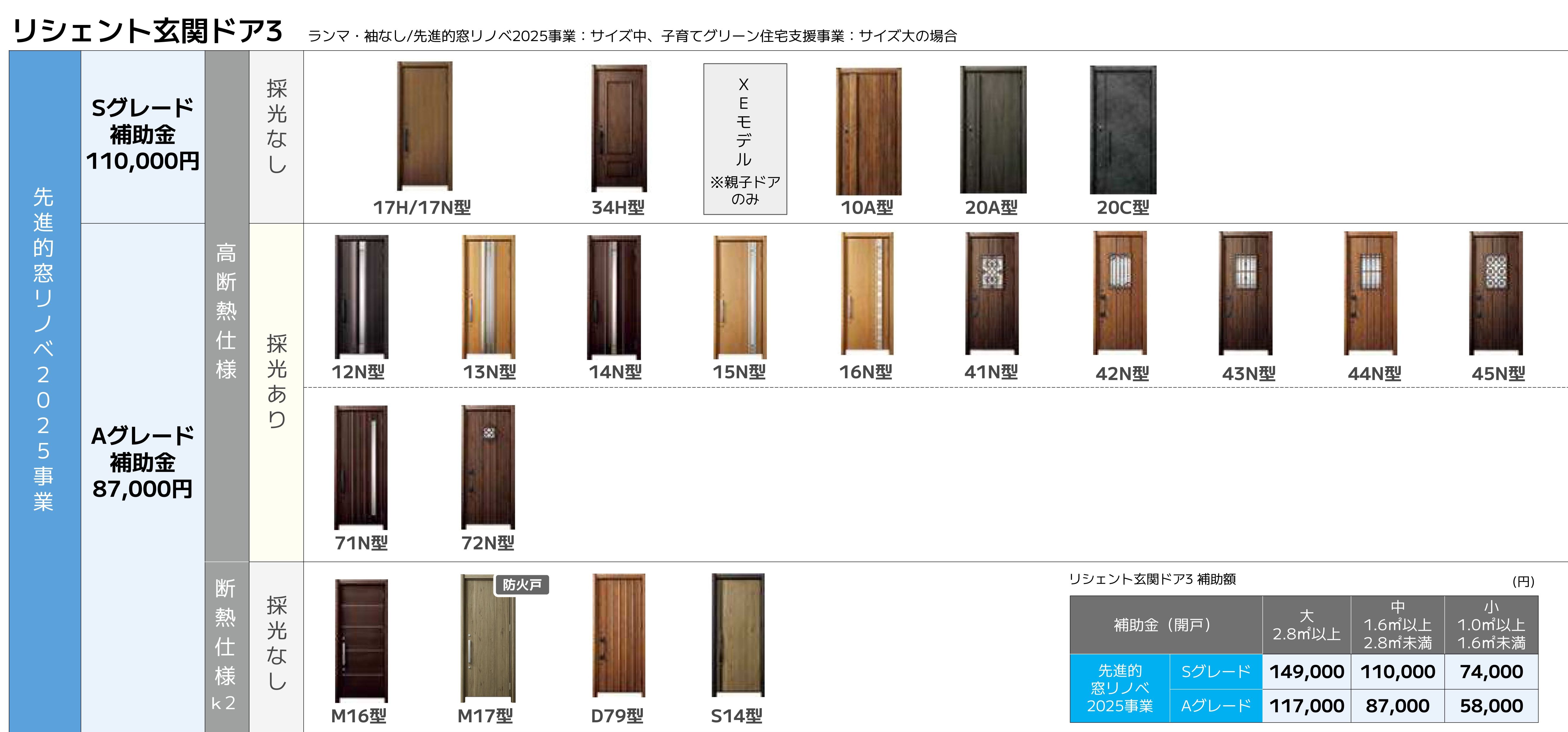 ※親子ドアの場合、子扉が採光ありだと補助金対象外になります