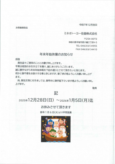 - 本年度もお世話なりました! 年末年始の営業のご案内