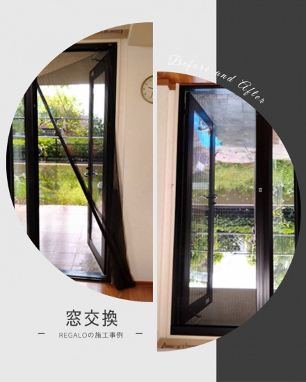 - 今回はこわれてしまった「アコーディオン網戸」の交換ビフォーアフターです。網戸の交換も弊社にお任せ!