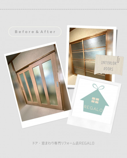 - 老朽化で擦れて重くなった室内建具を、LIXILのリフォーム専用商品「リノバ」に交換した施工事例をご紹介します。採光デザイン&クリエラスクカラーで明るく馴染みの良い仕上がりになりました。