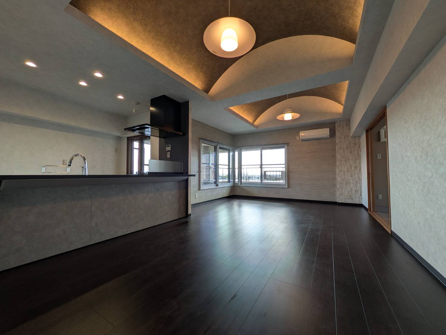 最上階6階で約300°ぐらいは見渡せる、当マンションの"VIPルーム","エース部屋"が長年の入居者様の退去に伴い空室となったとのことで、全面的に改装して賃貸の価値を高めたい、とのご要望を受け、2ヶ月の工期でリノベーション工事を行いました。