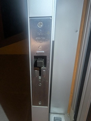 - 施設のエントランス ハンガー引戸の錠前が破損したため、交換しました