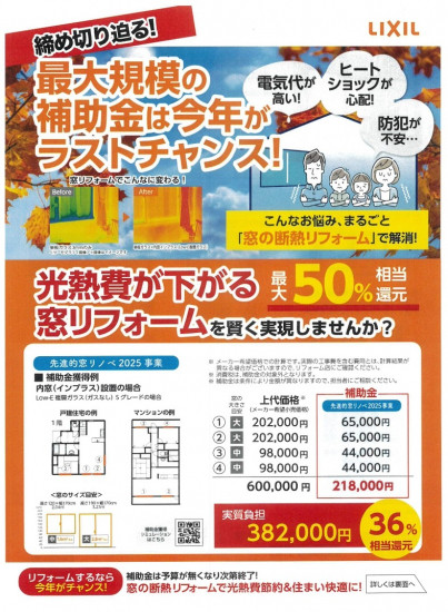 - 補助金で“あったか快適”な冬を!内窓インプラスで今がラストチャンス!