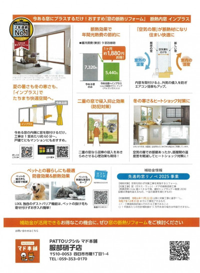 - 国の窓リノベ補助金が年内で終了予定! 内窓リフォームで“あったか快適”な冬に。 LIXILマド本舗 服部硝子店が丁寧にサポートします!