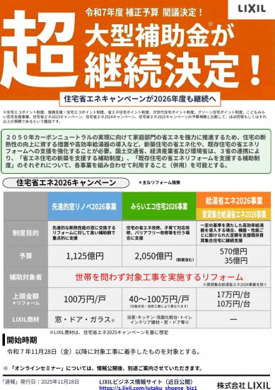 - 2026年 窓リノベ補助金まもなく開始予定|窓・玄関リフォームを検討中の方へ(四日市・桑名・鈴鹿)