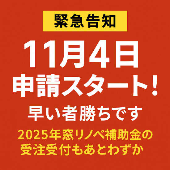 - 11月4日から第3会期の申請受付開始!補助金は早い者勝ち、窓リノベ2025も残りわずか。