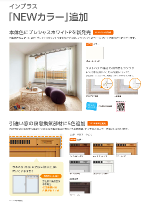 インプラスは窓枠のカラーが選べ、お部屋のイメージチェンジにもなります。