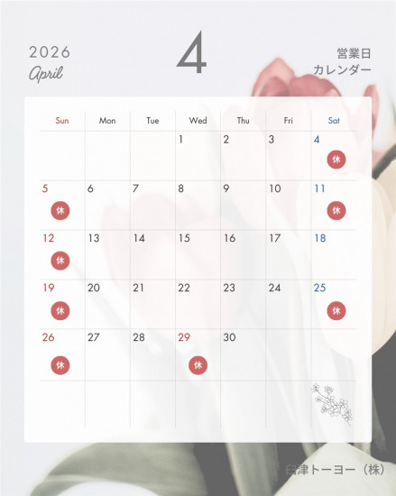 - 2026年4月 営業日カレンダー