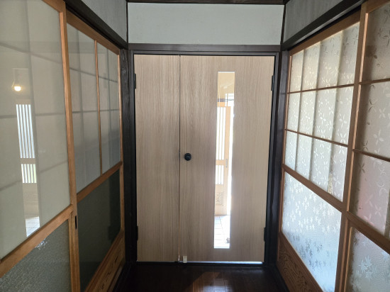 - 猫ちゃんを飼われるので逃げ出さないように建具を取り付けさせていただきました