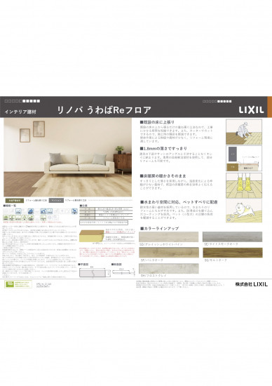- 今ある床に貼るだけ!1.8mmの極薄仕様で段差も少なく、ペットの足腰や水まわりにも優しい最新床材です。