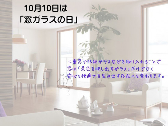 - 10月10日は「窓ガラスの日」!~二重窓・防犯ガラスで快適&省エネな暮らしを~
