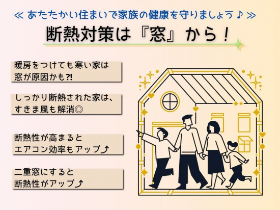 - 冬の寒さは窓の断熱不足が原因かも💦窓リフォームで、家族の健康と光熱費対策を同時に叶えましょう♪