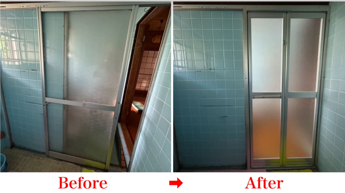 - 築30年浴室ドアが傷んでいるので、折れ戸に交換しました。