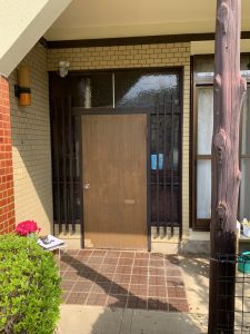 - 木製玄関で何度も塗装しているが剥がれてきてしまう。新しくしたい。とのご要望でした。 今回はリシェントG15型 断熱仕様の玄関にお取替えしました。