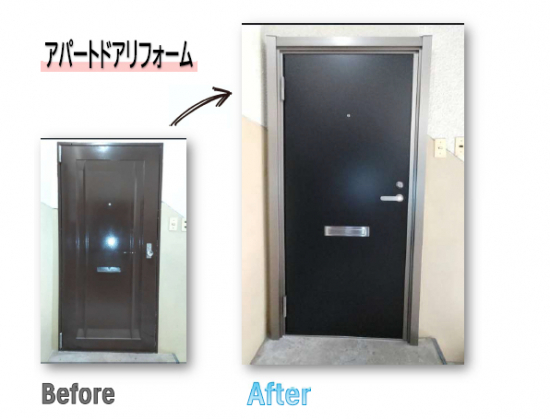 - ドアの施工事例です。 こちらは以前に弊社本荘店が施工した事例です。 もちろん能代店でも施工可能ですのでお問い合わせください。