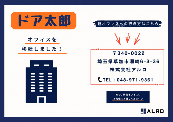 - 谷塚に店舗がございました、「ドア太郎」は11月より株式会社アルロの中で営業させていただきます✨