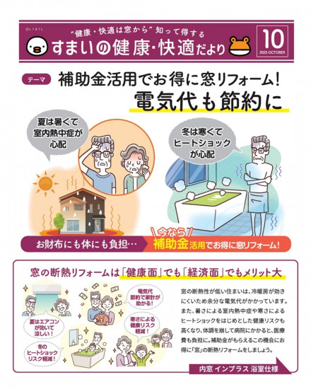 - 7月号は真夏の紫外線撃退! 『窓から始める上手な紫外線対策』です。 住宅省エネ2025補助金対象商品【インプラス】設置を是非ご検討下さい。