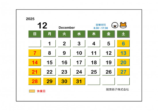 土曜日 日曜日 祝日 GW 夏季休暇 年末年始
